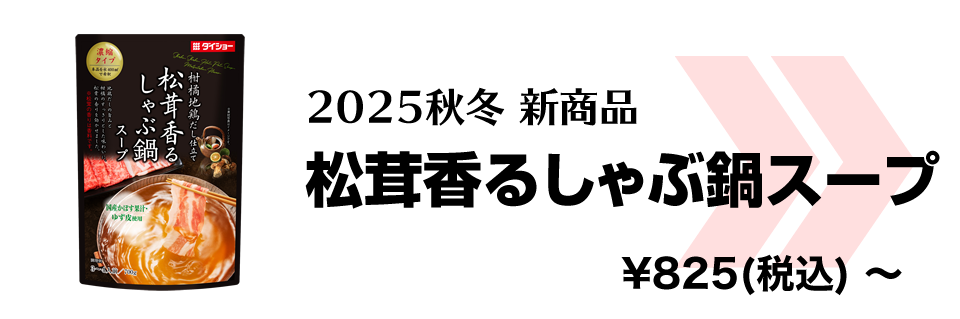天日塩・地鶏・鰹の旨みと国産かぼす果汁・ゆず皮のすっきりとした味わいに、松茸の香りを効かせたつけだれいらずのしゃぶしゃぶ用スープ。※松茸の香りは香料です。