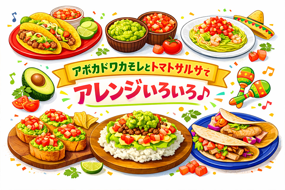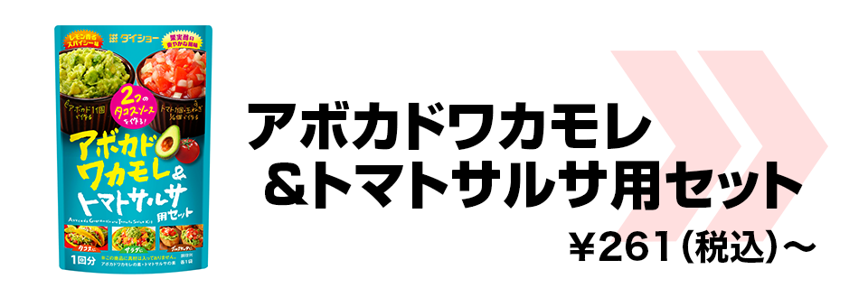 ※ サルサとは、スペイン語で「ソース」という意味で、アボカドを使って作る「ワカモレ」、トマトを使って作る「トマトサルサ」など様々な味付けがあります。