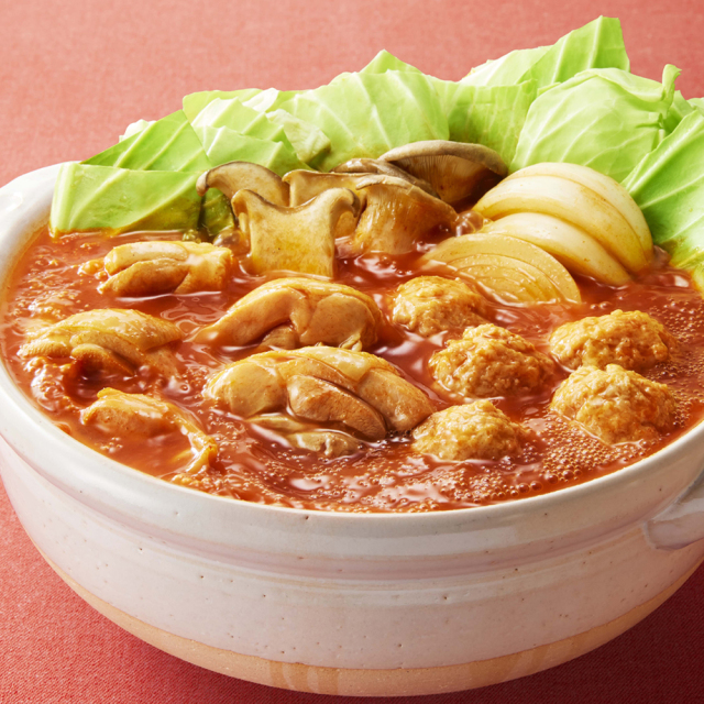 トマトの旨みに、ポーク・チキンのコクを加え、5種のスパイス&ハーブ(クミン・パプリカ・オレガノ・黒胡椒・赤唐辛子)を効かせた鍋スープです。